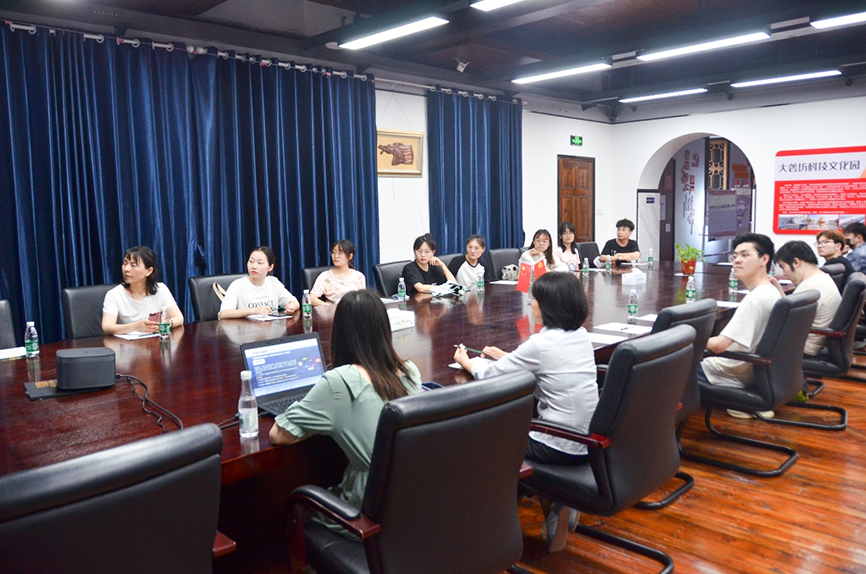 隨后,園區(qū)開展產學研習交流會,會上向調研組系統的介紹了園區(qū)文化歷史、產業(yè)分布、運營特色等,并針對學生的疑問進行解答。